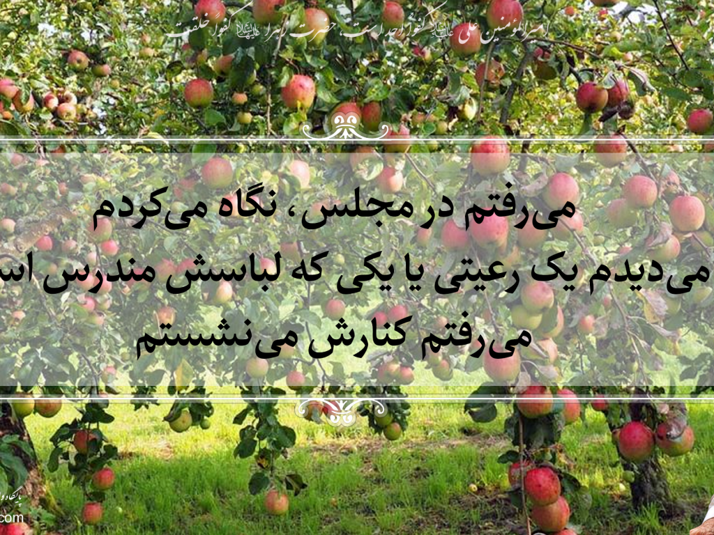 خدا حاج شیخ عباس تهرانی را رحمت کند. میگفت: حسین جان! هر کسی را که تحویلش نمیگیرند، تو برو تحویلش بگیر. من میرفتم در مجلس. نگاه میکردم، میدیدم یک رعیتی یا یکی که لباسش مندرس است، میرفتم کنارش مینشستم. احوال پرسی میکردم. روایت برایش میگفتم. آن بنده خدا هم حرفهایش را میزد. کسی که اینطوری است، پیرو امیر المؤمنین (علیه السلام) است